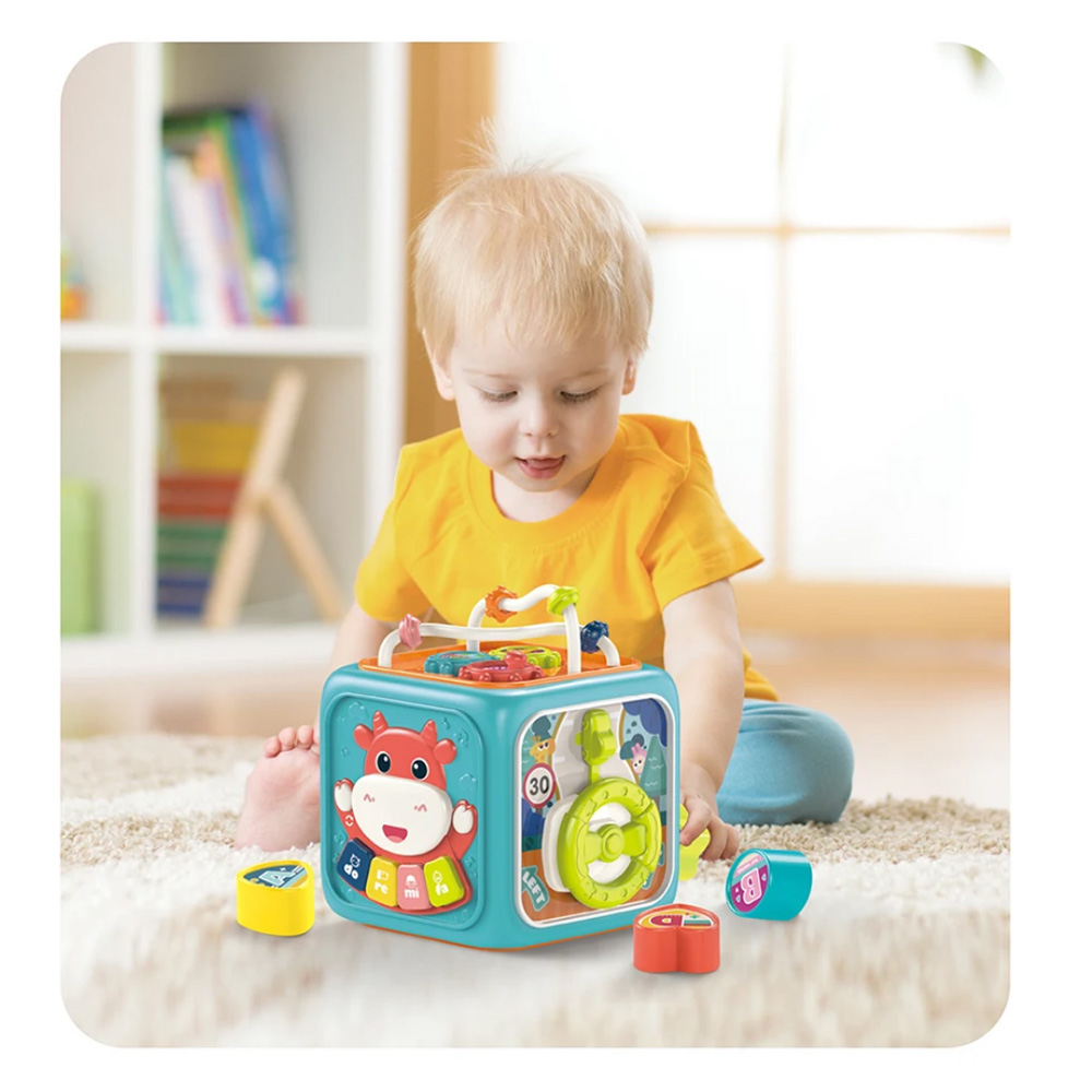 مکعب هوش Bibi-irn یک اسباب بازی جذاب و آموزنده برای تقویت مهارت های حرکتی، شناختی و ذهنی کودک است. این مکعب با طراحی رنگارنگ و شاد، توجه کودک را به خود جلب کرده و او را ساعت ها سرگرم میکند. این اسباب بازی دارای 6 بخش بازی مختلف شامل پنل چند منظوره، درب بامزه، دنده های چرخشی، ساعت آموزشی، شبیه ساز رانندگی و تشخیص اشکال است. هر وجه از این مکعب به رشد بخشی از توانایی های کودک مانند هماهنگی چشم و دست، شناخت رنگ ها و اشکال، درک زمان و تمرکز کمک میکند.