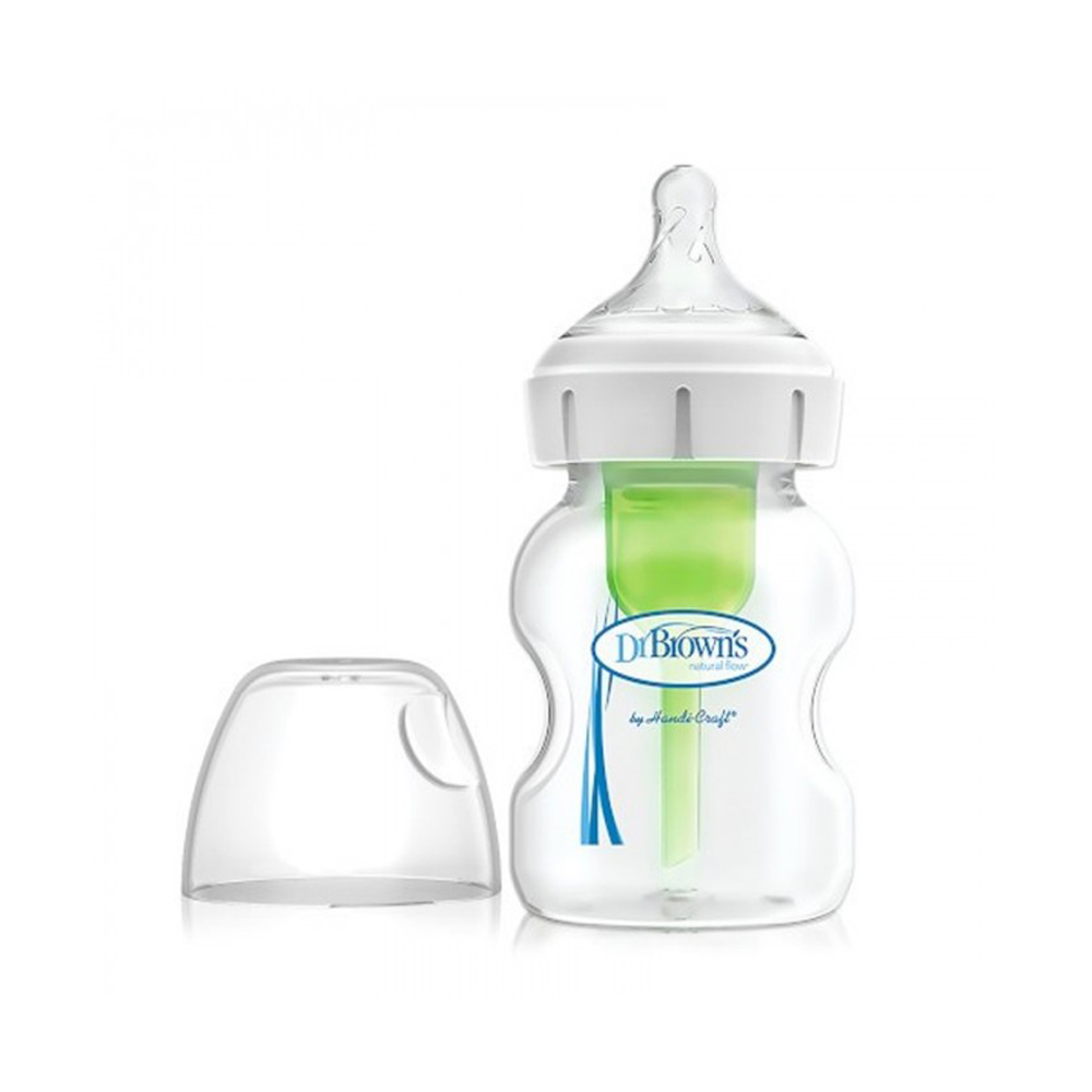شیشه شیر طلقی 150 میلی لیتر دکتر براون (Options+ Wide-Neck)، از محبوبترین مدلهای تغذیه نوزادان در سراسر دنیاست. این شیشه با سیستم ونت داخلی مخصوص، از ورود هوا به مایع جلوگیری کرده و مانع بروز کولیک، نفخ، برگشت شیر و بیقراری نوزاد میشود.