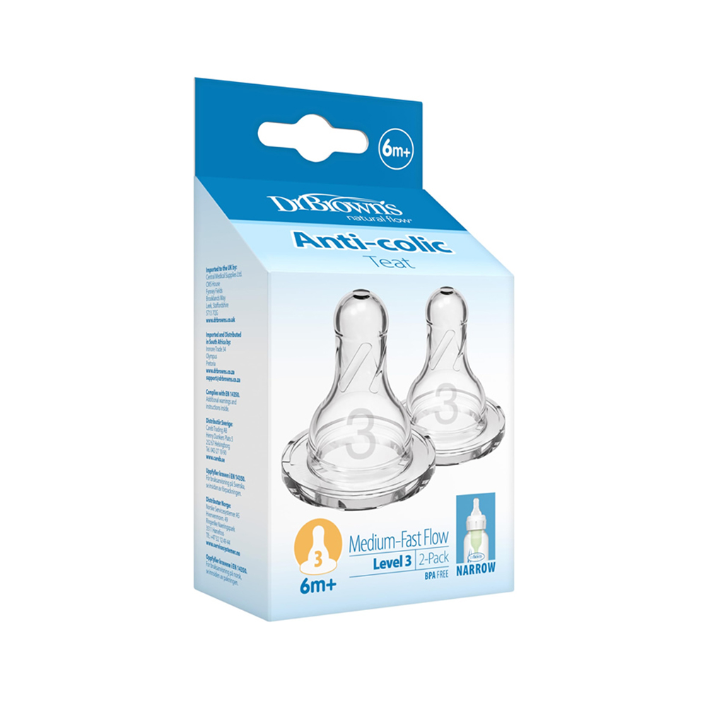 سرشیشه Level 3 دکتر براونز از نوع باریک، برای نوزادان بالای ۶ ماه و دارای جریان سریعتر طراحی شده است. این مدل انتخابی مناسب برای کودکانی است که در حال یادگیری تغذیهی بیشتر در هر وعده هستند. طراحی ضد کولیک و تهویهی هوای داخلی، باعث کاهش نفخ و رفلاکس معده میشود. از سیلیکون مرغوب و ایمن برای نوزاد تولید شده است.