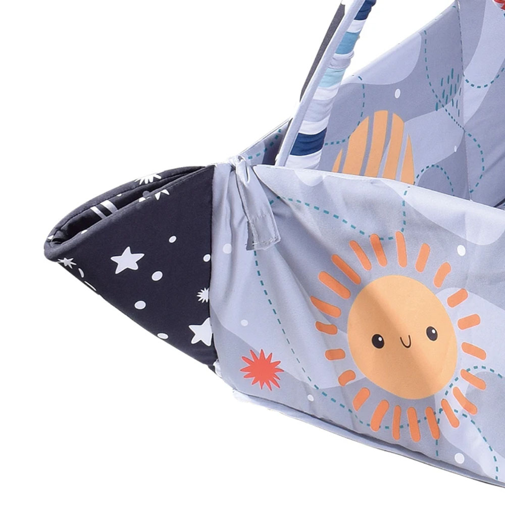 سطح زیرانداز از پنبه ارگانیک و مواد بدون BPA ساخته شده است تا علاوه بر لطافت و راحتی، ایمنی کامل پوست حساس نوزاد را تأمین کند. ضخامت مناسب تشک باعث ایجاد یک محیط نرم و پایدار برای حرکت، غلتیدن و تمرین عضلات میشود. رویهی این زیرانداز به راحتی قابل شستشو و تمیز کردن است و همراه با یک بالش نرم ارائه میشود تا زمان Tummy Time (خوابیدن روی شکم) برای کودک راحتتر، مؤثرتر و جذابتر باشد.