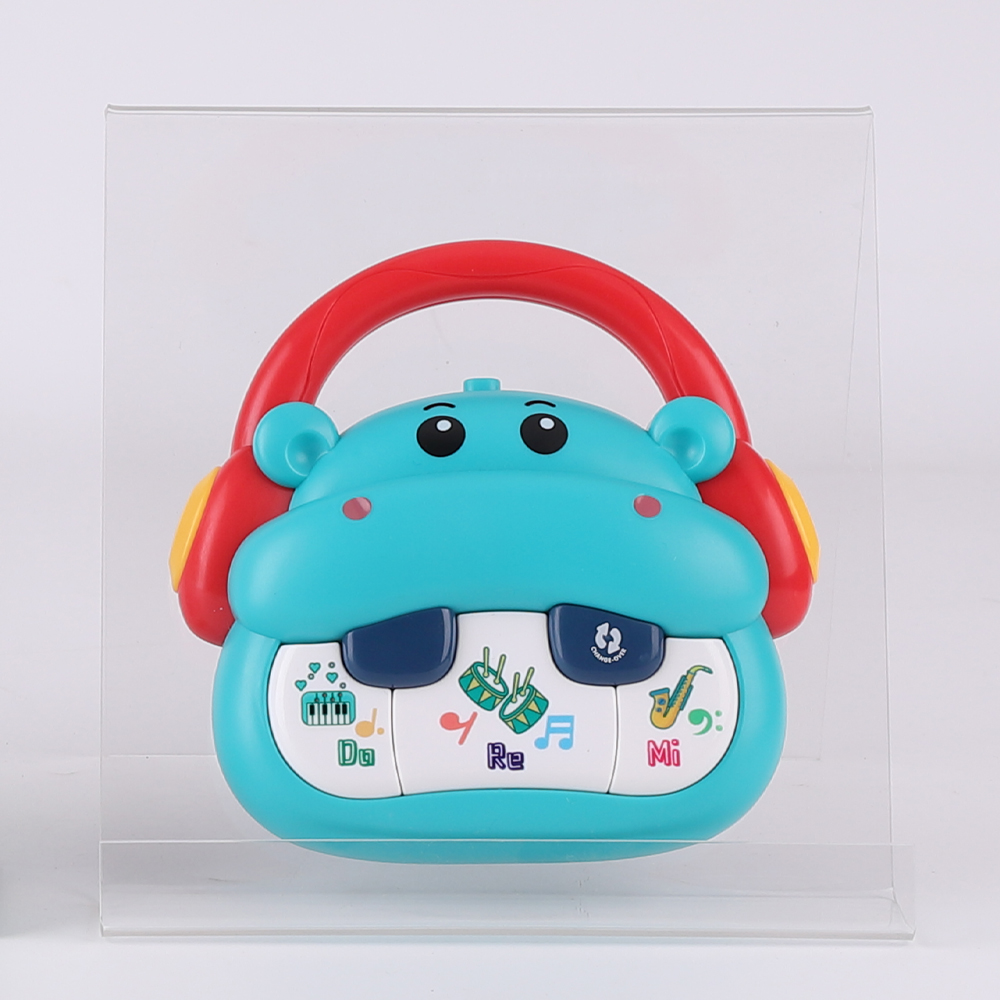 اسباب بازی موزیکال طرح اسب آبی دارای کیبورد پیانویی است که با پخش موسیقی های آرامبخش یا شاد، کودک شما را سرگرم میکند. یک کلید change در روی محصول طراحی شده که با فشردن آن، شما میتوانید موسیقی های اسباب بازی را عوض کنید؛ این محصول همچنین دارای یک کاید برای خاموش یا روشن کردن اسباب بازی است.