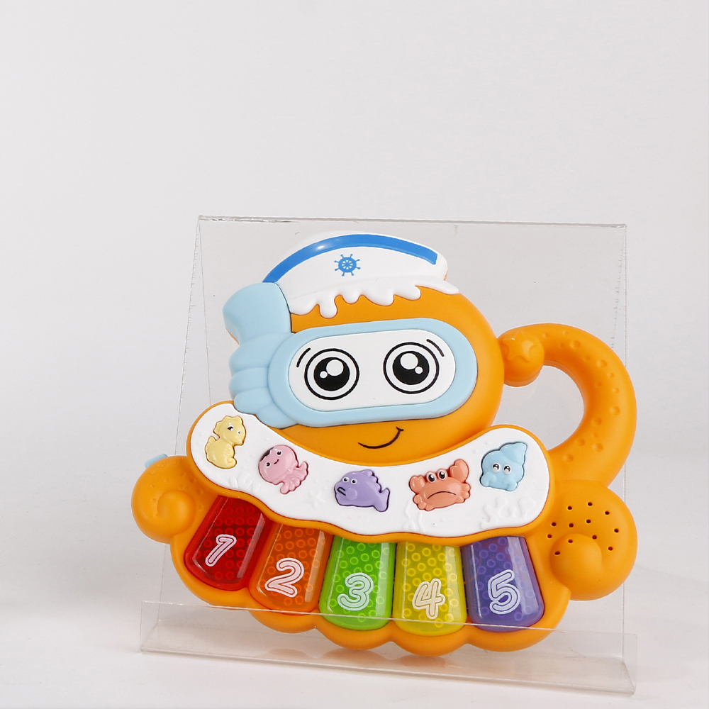 اسباب بازی موزیکال طرح هشتپا دارای کیبورد پیانویی با 5 دکمه ی مجزا است که دارای چراغ بوده و در هنگام نواختن با پخش نور، توجه کودک را به خود جلب میکند. این محصول دارای 5 کلید با شکل حیوانات دریایی بوده و موسیقی های شاد و متنوع توسط این کلیدها پخش میشود.
