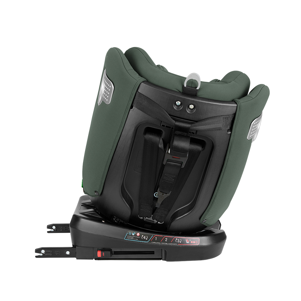 وجود چرخش ۳۶۰ درجه امکان بستن کودک را بسیار راحتتر میکند و قابلیت نصب در دو حالت خلاف جهت حرکت (40–105 cm) و همجهت با حرکت (76–150 cm) را فراهم میسازد.