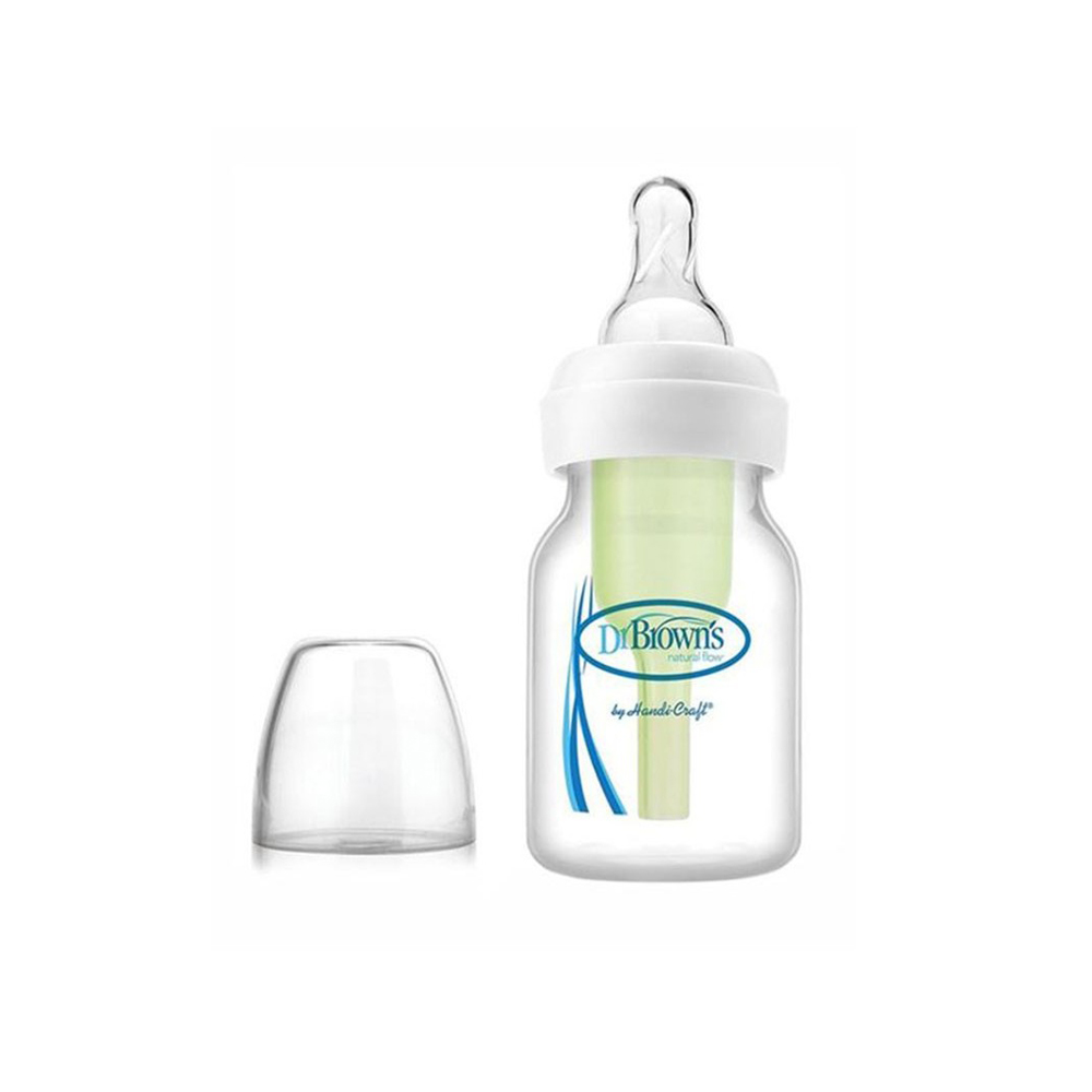 شیشه شیر طلقی 60 میلی لیتر Dr Browns انتخابی ایدهآل برای نوزادان تازه متولد شده است. طراحی ضدنفخ و سیستم تهویهی منحصربهفرد این شیشه باعث میشود هوای اضافی وارد معده نوزاد نشود و از دلدرد، نفخ و رفلاکس جلوگیری کند.