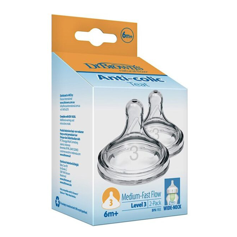 سرشیشه Level 3 دکتر براونز جریان سریعتری دارد و برای نوزادان ۶ ماه به بالا مناسب است. طراحی خاص آن هماهنگ با سیستم تهویه داخلی بطری است تا از بلعیدن هوا و دلدرد جلوگیری کند. این سرشیشه از جنس سیلیکون مرغوب ساخته شده و برای کودکانی که نیاز به جریان بیشتر شیر دارند گزینهای ایدهآل است.