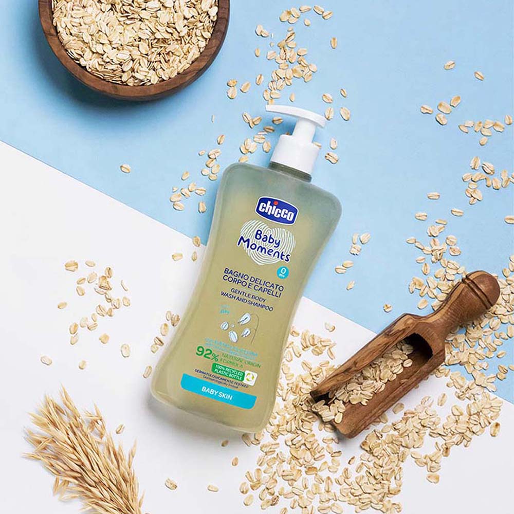 شامپو سر و بدن 500 میل چیکو Chicco اصل با فرمولاسیون ملایم و بدون اشک، مخصوص پوست و موی حساس نوزادان طراحی شده است. این شامپو ترکیبی از عصاره های طبیعی مانند جو دوسر و بابونه است که به ارامی پوست و موی نوزاد راتمیز کرده و نرمی و لطافت طبیعی آن را حفظ میکند. شامپو سر و بدن چیکو فاقد پارابن، الکل، رنگ و صابون است و PH آن متناسب با پوست لطیف نوزاد تنظیم شده تا از بروز حساسیت و خشکی جلوگیری کند. این محصول به راحتی کف کرده و به آسانی شسته میشود؛ بنابراین برای استفاده ی روزانه بسیار مناسب است. این شامپو با رایحه ای دلپذیر و حس تمیزی طولانی مدت، یک انتخاب مطمئن برای والدینی است که به سلامت و آرامش پوست وموی کودک خود اهمیت میدهند.